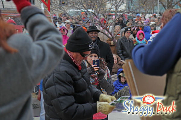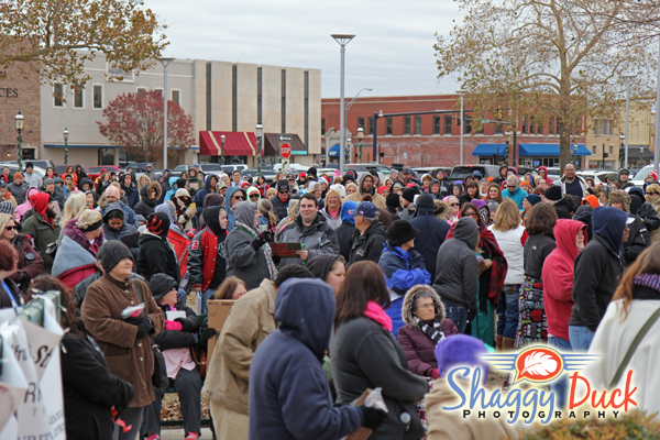 ENID, OK - The 13th Annual Candy Cane Cash drawing took place Saturday morning and the weather lived up to its frigid reputation. A multitude of hopeful shoppers braved the cold and gathered around the gazebo on the courthouse lawn. The dynamic duo of Frank Baker and April Danahy kept the crowd distracted from the cold by calling out winning numbers and handing out $15,000 in cash.