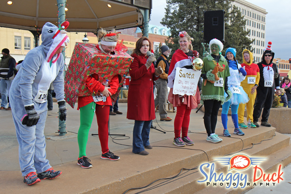 The morning began with the Candy Cane Dash, a 5K fun run, and the Holiday Costume Contest. Many runners donned wacky outfits in honor of the holiday season. Costumes included a shark, a Christmas present, Winne Pooh and the Cat in the Hat as well as others. The winning combo was Cindy Lou Who and the Grinch.
