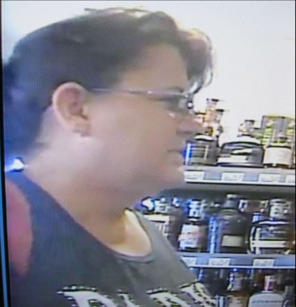 Surveillance video shows the female walk in, immediately turn left, take her purse off her shoulder, bend down, take a bottle from the shelf, and place it in her bag. The female is then seen leaving the store without paying for the bottle of Kentucky Deluxe.