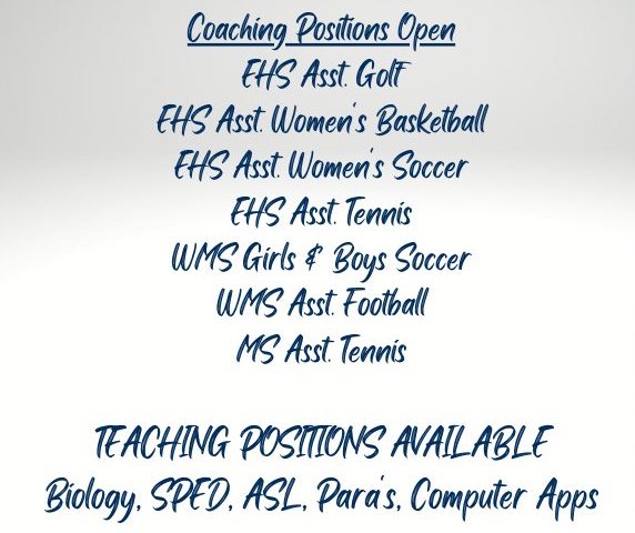 EPS has coaching opportunities available! Contact Athletic Director Billy Tipps at 580-366-8350 or apply for positions at enidpublicschools.org/applytoday!