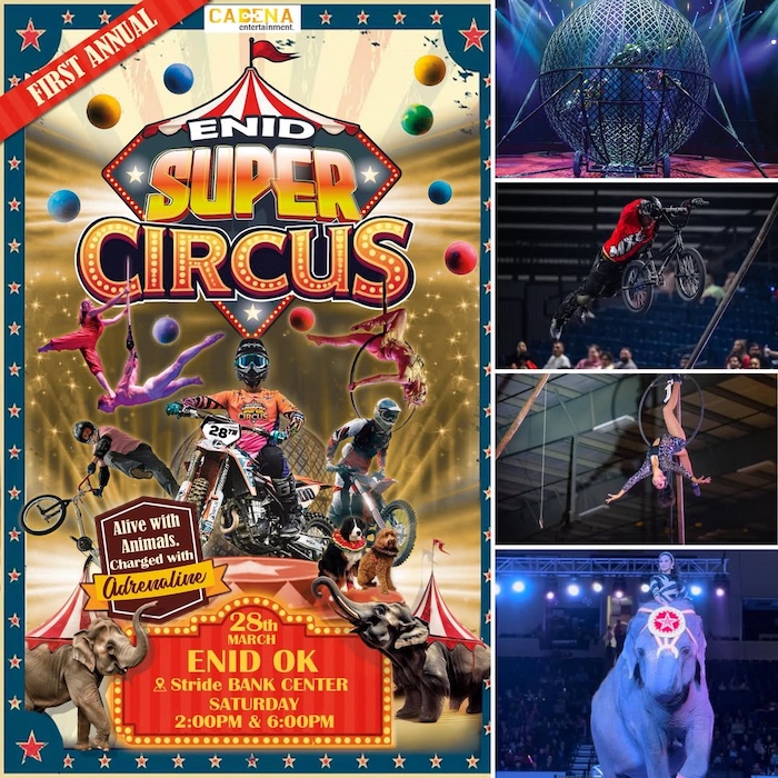 Enjoy the ENID Super Circus at the Stride Bank Center on Saturday, March 28. Showtimes: 2:00 PM & 6:00 PM.