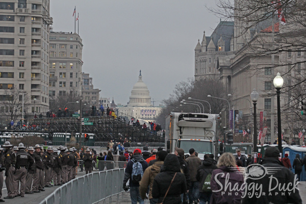This shot is looking east down Pennsylvania Ave. towards the US Capitol. This was the very end of the parade route before it turned north onto 15th St. NW. There was an entire block lined with Highway Patrol Troopers.