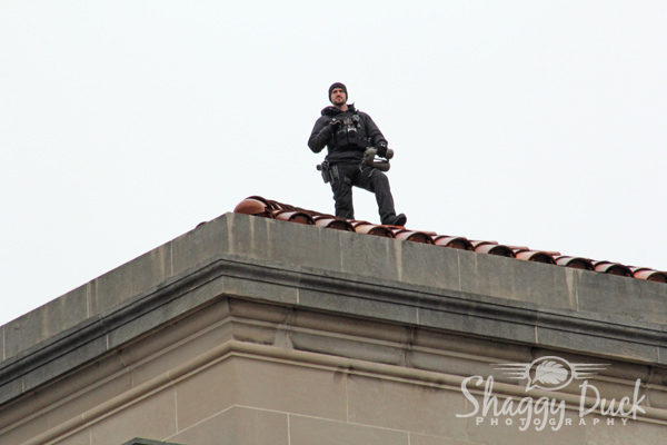 Security along the parade route was very heavy. The police were lined up along both sides of Pennsylvania Ave. You could also see snipers on top of just about every roof along the street.