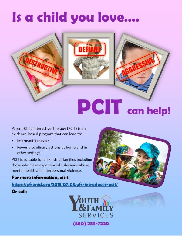 For more information visit https://yfsenid.org/parent-child-interactive-therapy/. To schedule an appointment or consultation, call YFS at (580) 233-7220
